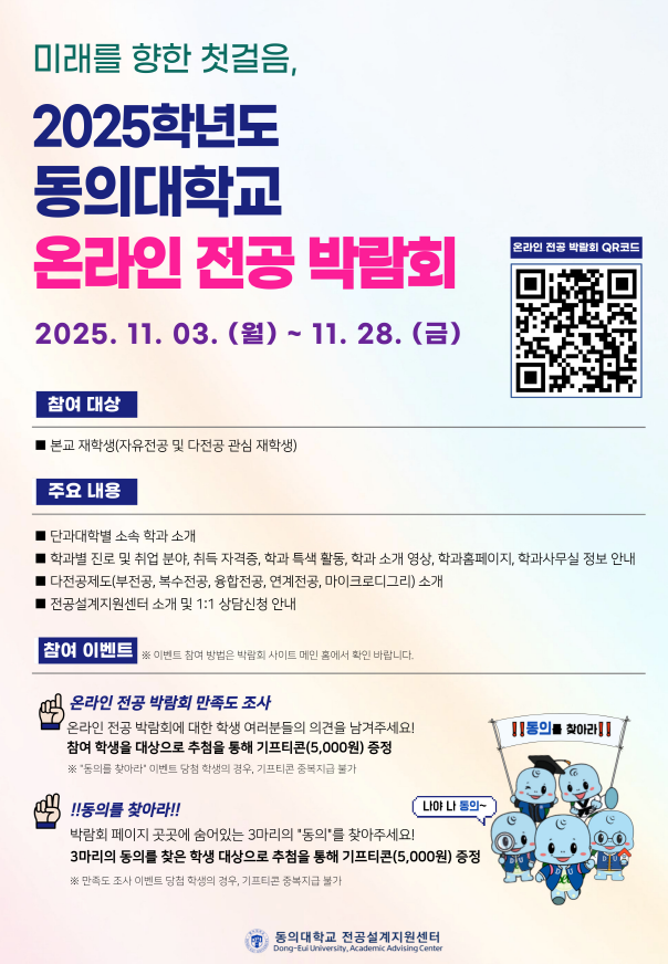 2025학년도 동의대학교 온라인 전공 박람회 개최 안내