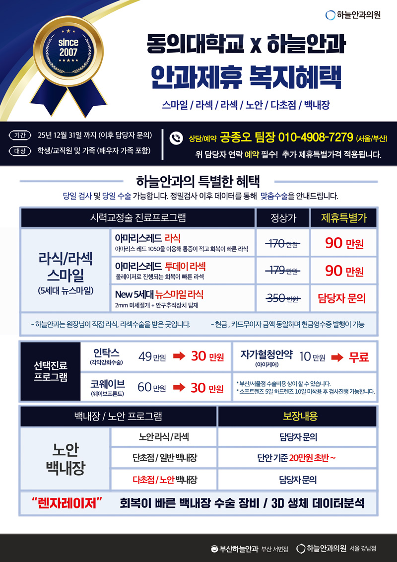 [후원의 집] 하늘안과 11~12월 우대 혜택 안내
